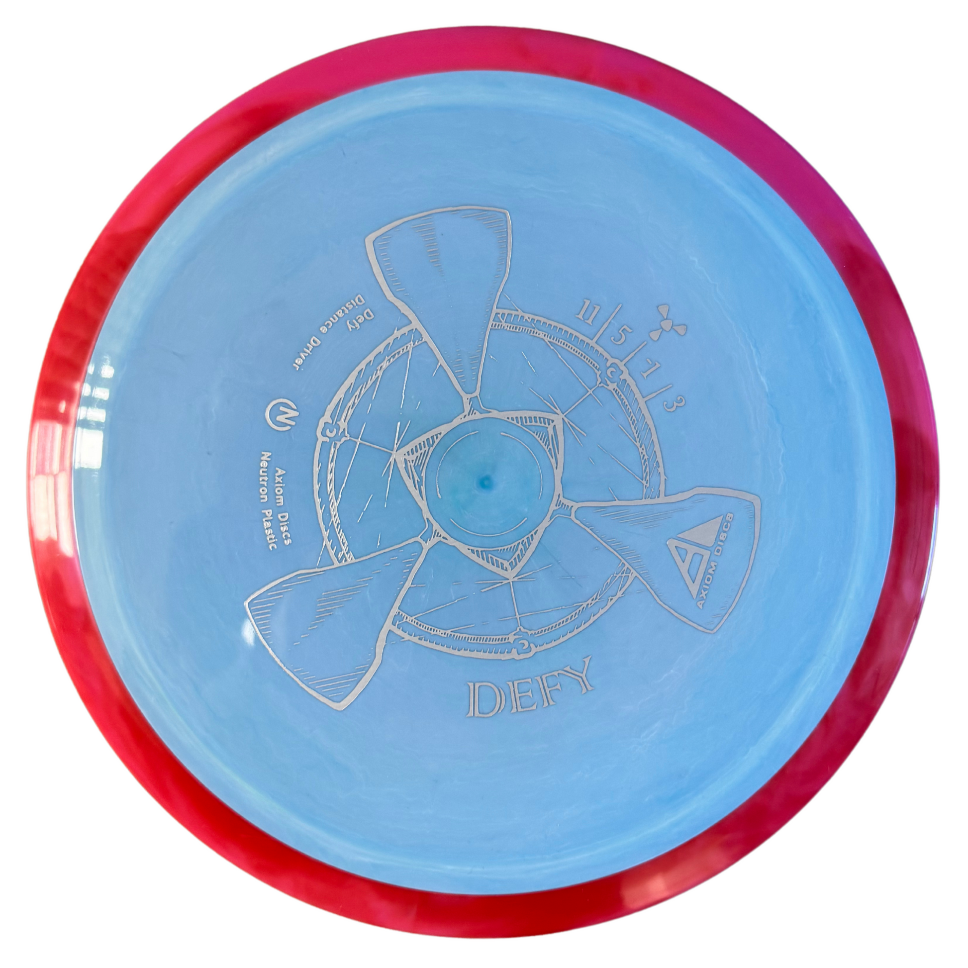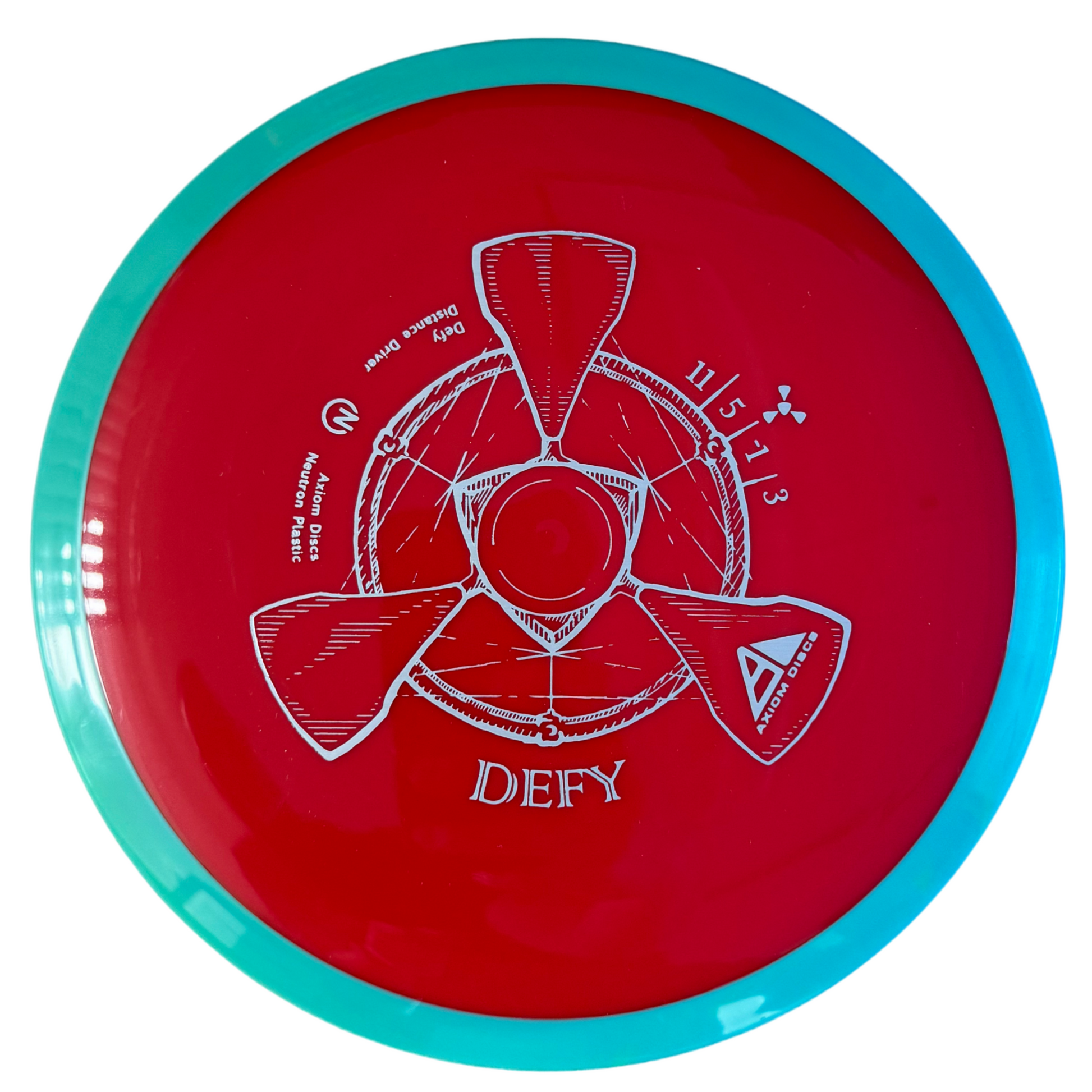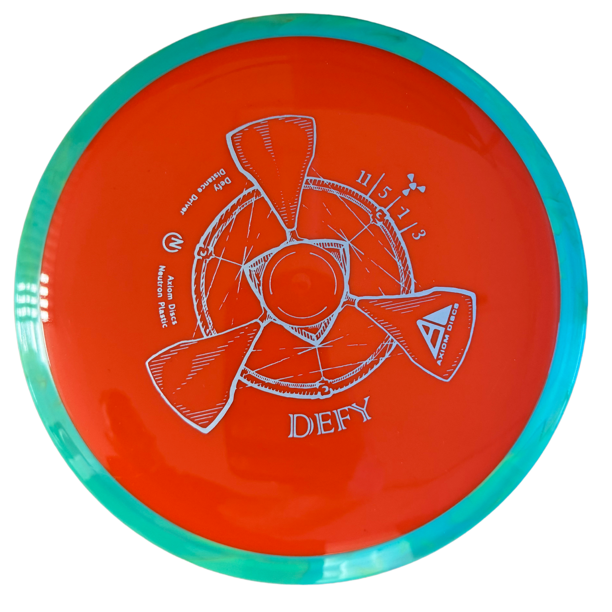 The Defy is straight with a nice bite of overstability at the end, and is best described as a heavily seasoned MVP Photon or a longer Axiom Crave. Like the Crave the Defy exhibits remarkable resistance to turnover even at high power. Players seeking a long straight power driver will appreciate the line-locking tendencies of the Defy, and throwers not fully powering the Defy will still get a highly useable long overstable disc.