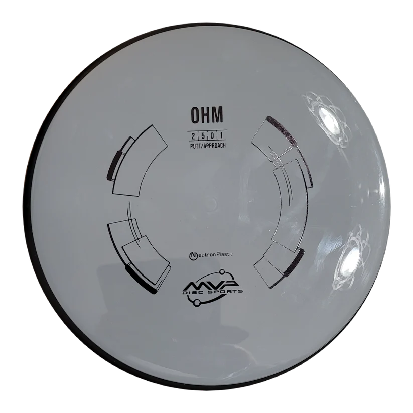 Laser straight drives and confident putts are the best ways to describe the brand new Ohm from MVP. Debuting in Neutron plastic, the Ohm is inspired by the Streamline fan-favorite Pilot, but with enhanced GYRO® effect. The results are incredible! The tried and true shape provides both a reliable grip and loads of glide for some truly impressive drives and putts. The Ohm is sure to find a place in every disc golfer’s bag and, thanks to the durability of Neutron plastic, stay there.