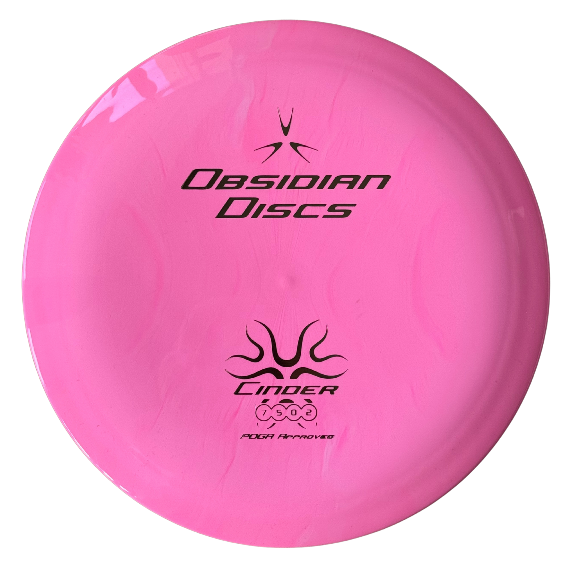 Cinder is a more stable disc of Obsidian's range. Cinder lifts well in both backhand and forehand throws, regardless of the player's throwing skills. With its relatively low speed, Cinder is an easy-to-handle tool for situations that require precision and control. It is an overstable control driver that makes most throws possible. It also has an exceptionally good Glide and is suitable for both amateurs and experienced players.
